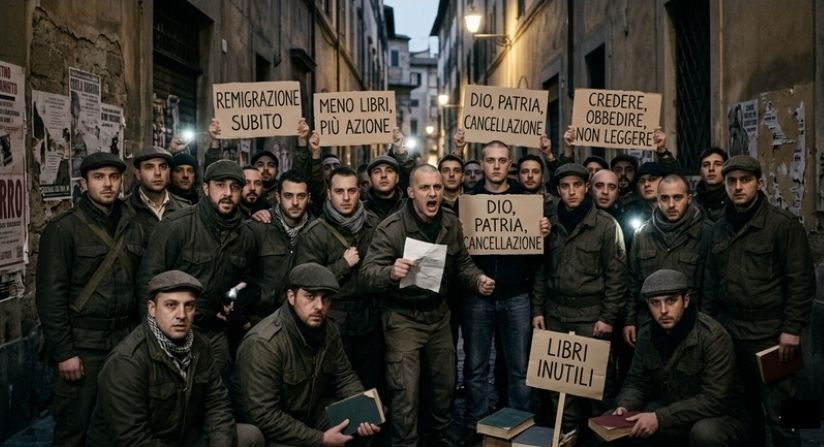 Diventare “fascioidioti” è un processo di pigrizia intellettuale: è molto più facile odiare una categoria di persone che studiare le dinamiche del mercato del lavoro, la demografia o il diritto internazionale. La lettura è l’unico vero atto di resistenza contro questo degrado; è l’unico strumento che permette di capire che la “purezza” sbandierata dai nuovi agitatori è solo un altro nome per la miseria culturale e materiale. Chi chiude i libri, inevitabilmente, finisce per voler chiudere le frontiere, senza accorgersi che sta solo chiudendo la porta della propria cella.