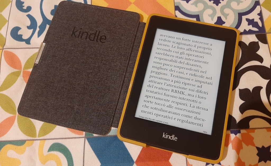 Utilizzare il Kindle, in particolare con gli ultimi modelli, che hanno anche la luce integrata, permette di portarsi in giro un’intera libreria composta da migliaia di libri, risparmiare all’incirca un 30% sul prezzo di copertina, poter avere le informazioni sui tempi di lettura, poter leggere al buio senza disturbare nessuno. Le motivazioni per cambiare metodo usando la nuova tecnologia sono tantissime per mettere in soffitta i libri. Utilizzando da anni il Kindle, credo di poter affermare che tutte le motivazioni per continuare ad accendere questo device mi sono state riconfermate sempre più passa il tempo e archivio i libri letti. Qual è il maggior pregio del Kindle ? Sicuramente la leggerezza nel tenerlo con una sola mano. Non ho mai sentito la necessità di tornare alla carta in quanto la qualità dello schermo riproduce perfettamente il classico foglio di carta, posso ordinare e iniziare un libro a qualsiasi ora del giorno e della notte e sono facilitato nel posizionare i segnalibri virtuali e sottolineare le frasi importanti.